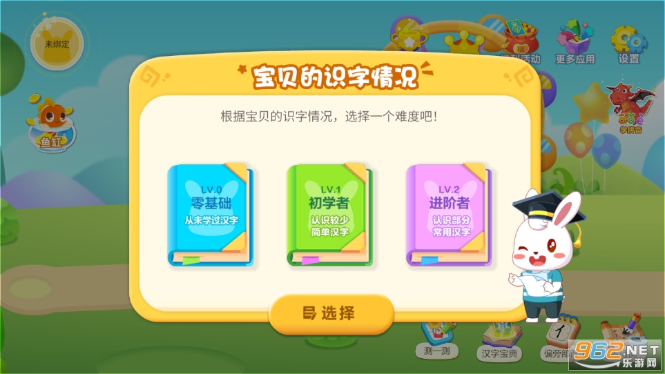 2、自由选择等级:用户可以根据课程编排,由简入深,进行分阶段学习。也可以开启自由模式,自主选择想要学习的汉字。