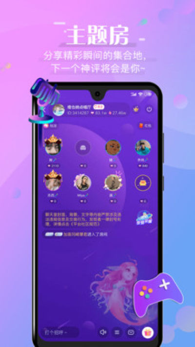 【主题房】:连麦互动、一展歌喉、组队游戏……每天都有新鲜玩法等你来体验,尽情享受欢乐时光。