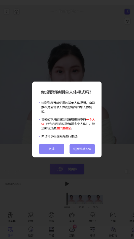 在这里不仅可以很轻松的美化视频,还可以美化面部,连身材都是可以直接美化的。