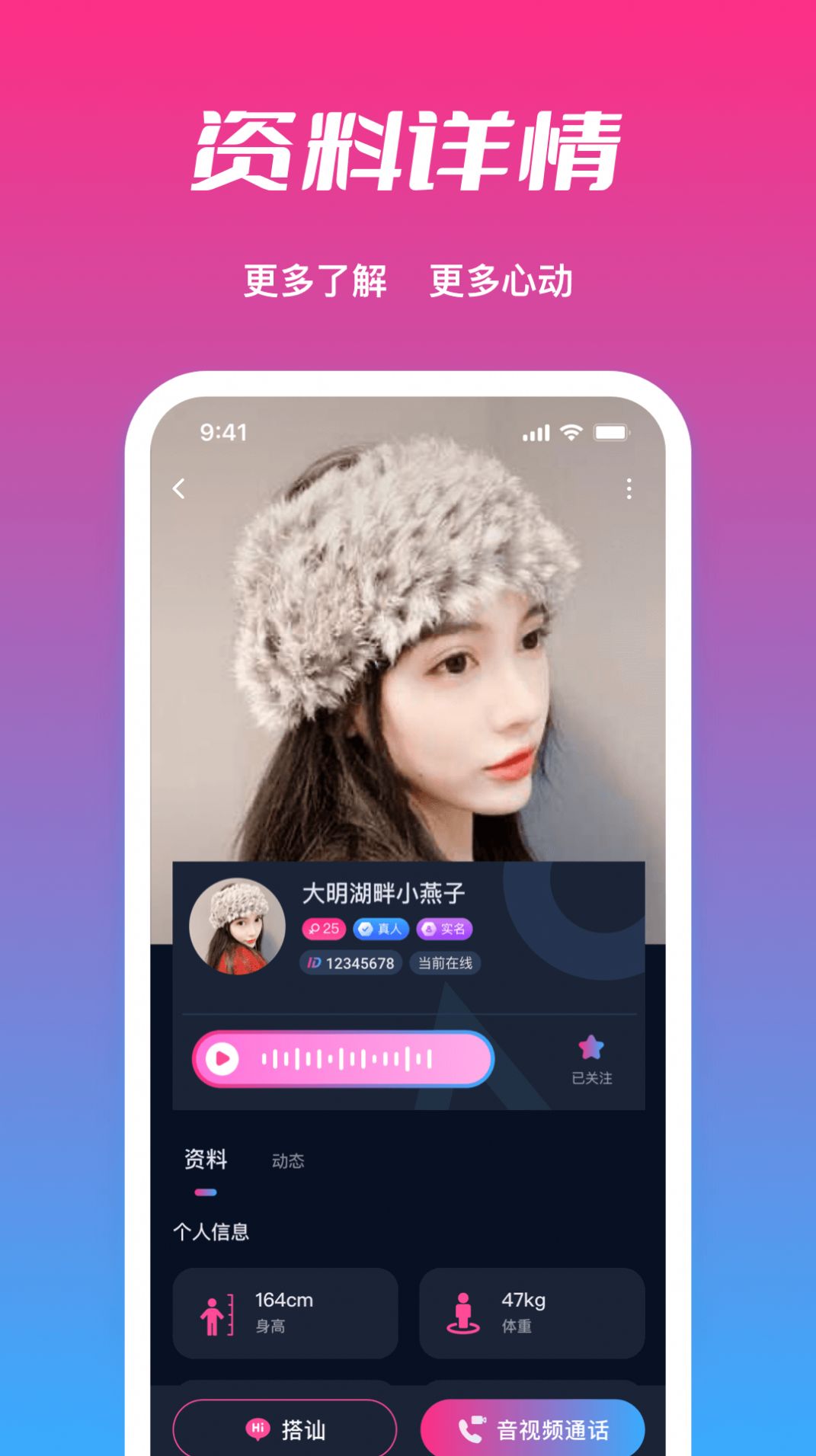 4、使用者在聊天前可以看到对方的个人信息介绍,涵盖了兴趣爱好等各种内容。