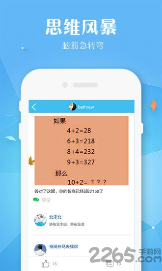 脑点子在线是一款轻松有趣的智力测试软件,用户不仅可以与亲朋好友一起参与有趣的智力测试,还可以激发自己脑洞大开,让你大脑天马行空的迸发出各种奇思妙想,并且还要人气比拼,为您推荐众多有趣的人。