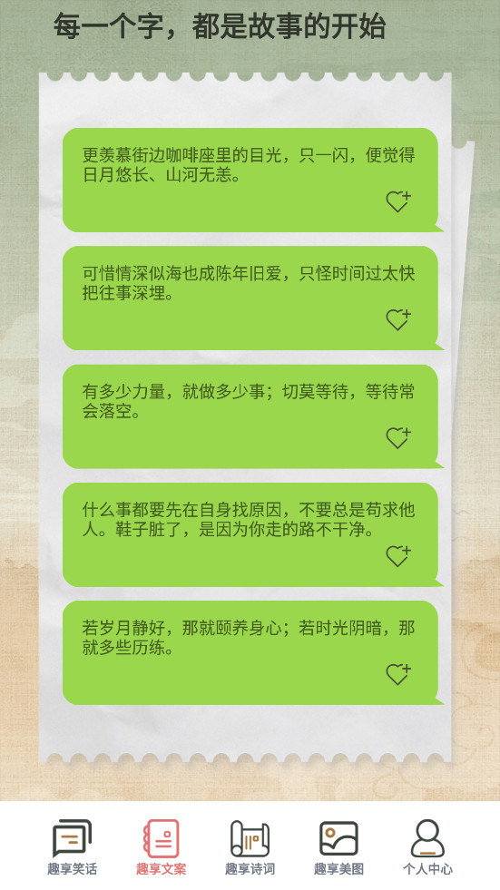 如果想要看文案,点击【趣享文案】,然后向上滑动浏览其他文案