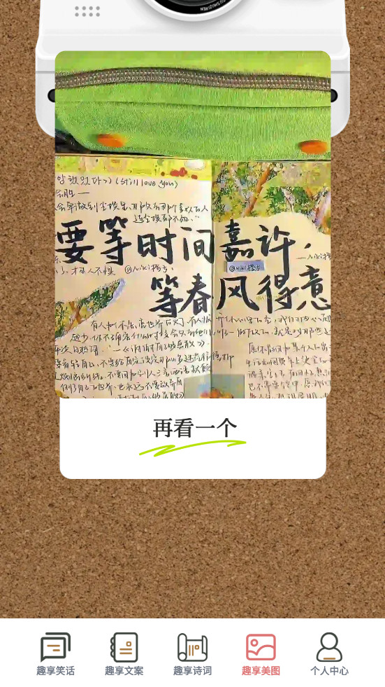 如果想要看美图,点击【趣享美图】,然后点击【再看一个】接换下一个