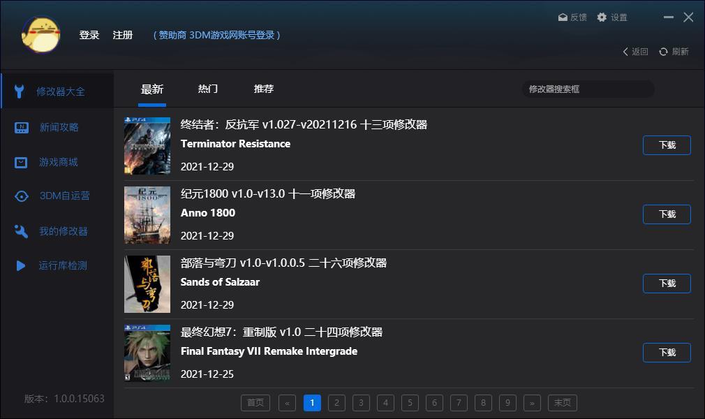1、进入首页后,您可以浏览到最新更新的游戏修改方案,并根据个人需求进行选择与启用。