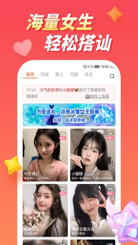 【真人互动】可爱的妹子们随时在线等你连线,通过语音或视频感受心动时刻。