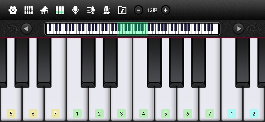 -可自行调节钢琴块的宽度:点击钢琴键盘左右两边的+-号可随时调节钢琴块的宽度。