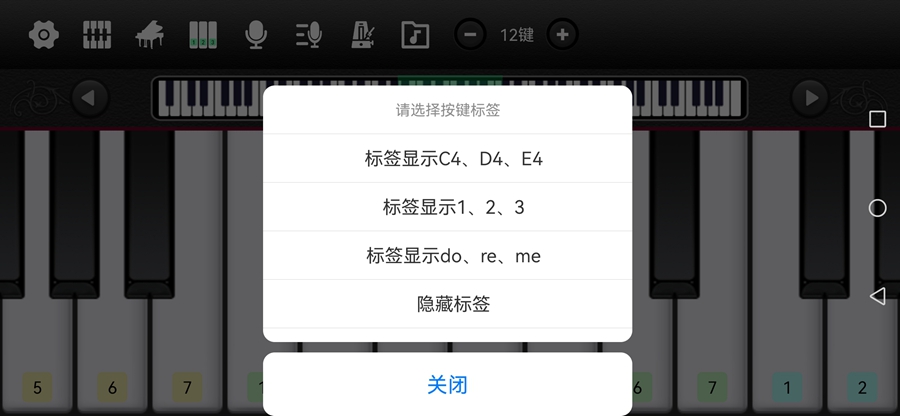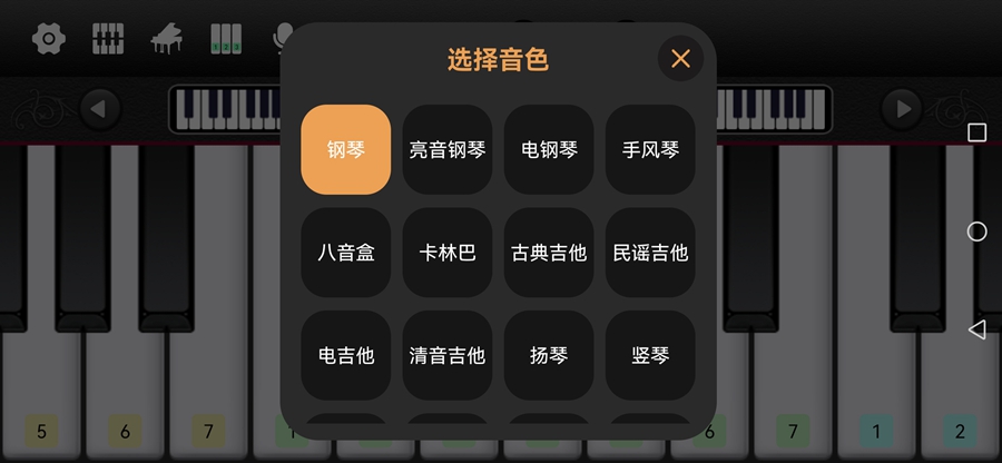 支持多种键盘音效:钢琴, 八音盒, 管风琴, 电子琴等。