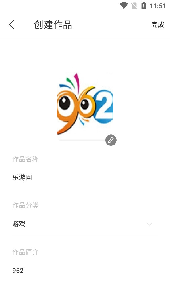 可以更换作品的封面、作品名称、分类、简洁,最后点击完成