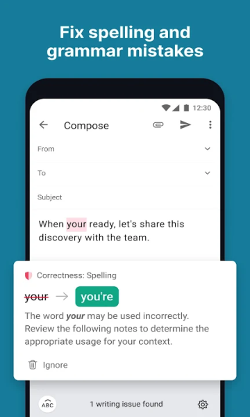 grammarly免费版是一款非常不错的语法学习软件,它可以帮助您纠正日常打字中的语法、拼写、标点符号等问题。让您在所有应用程序中都能清晰、自信且无错误地书写。有需要的快来下载grammarly免费版吧!