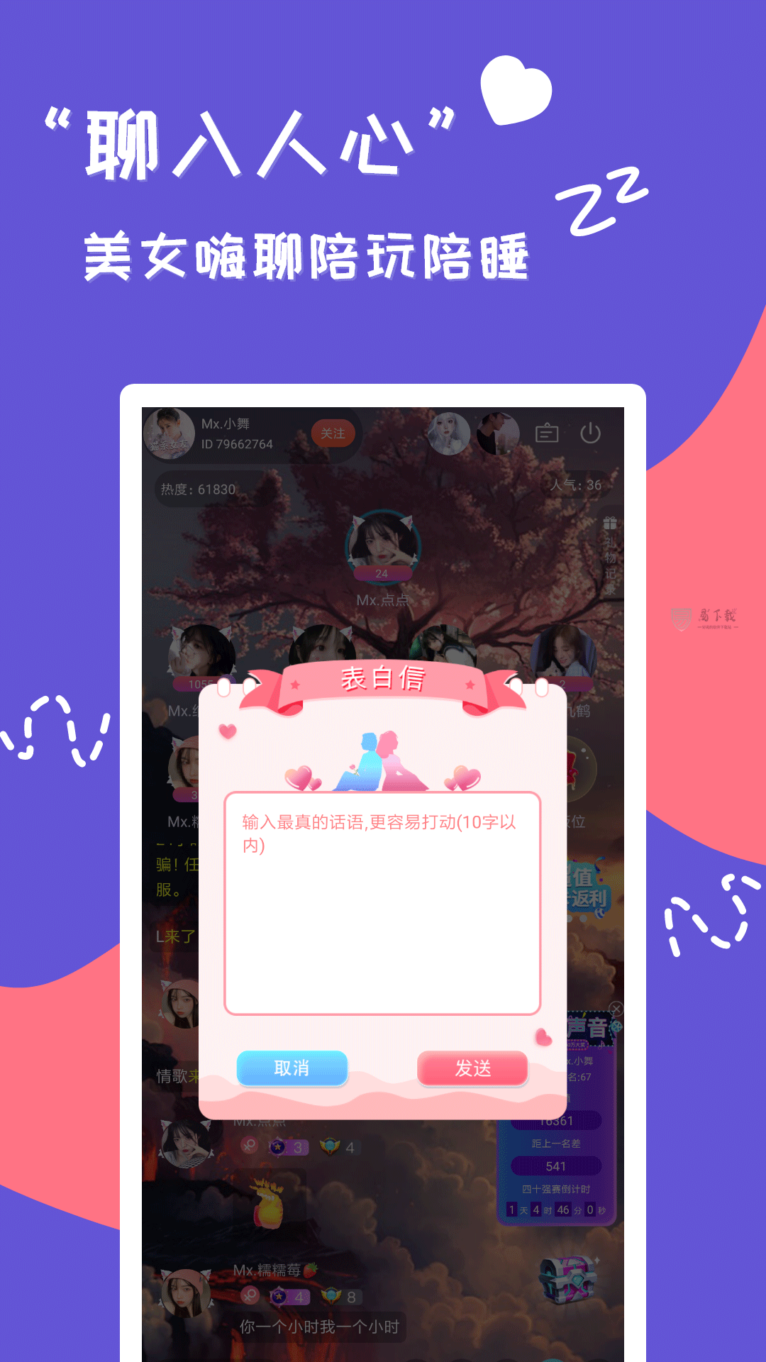 2、实时发言、心动现场等功能,助你快速找到心仪的TA,开启甜蜜缘分。