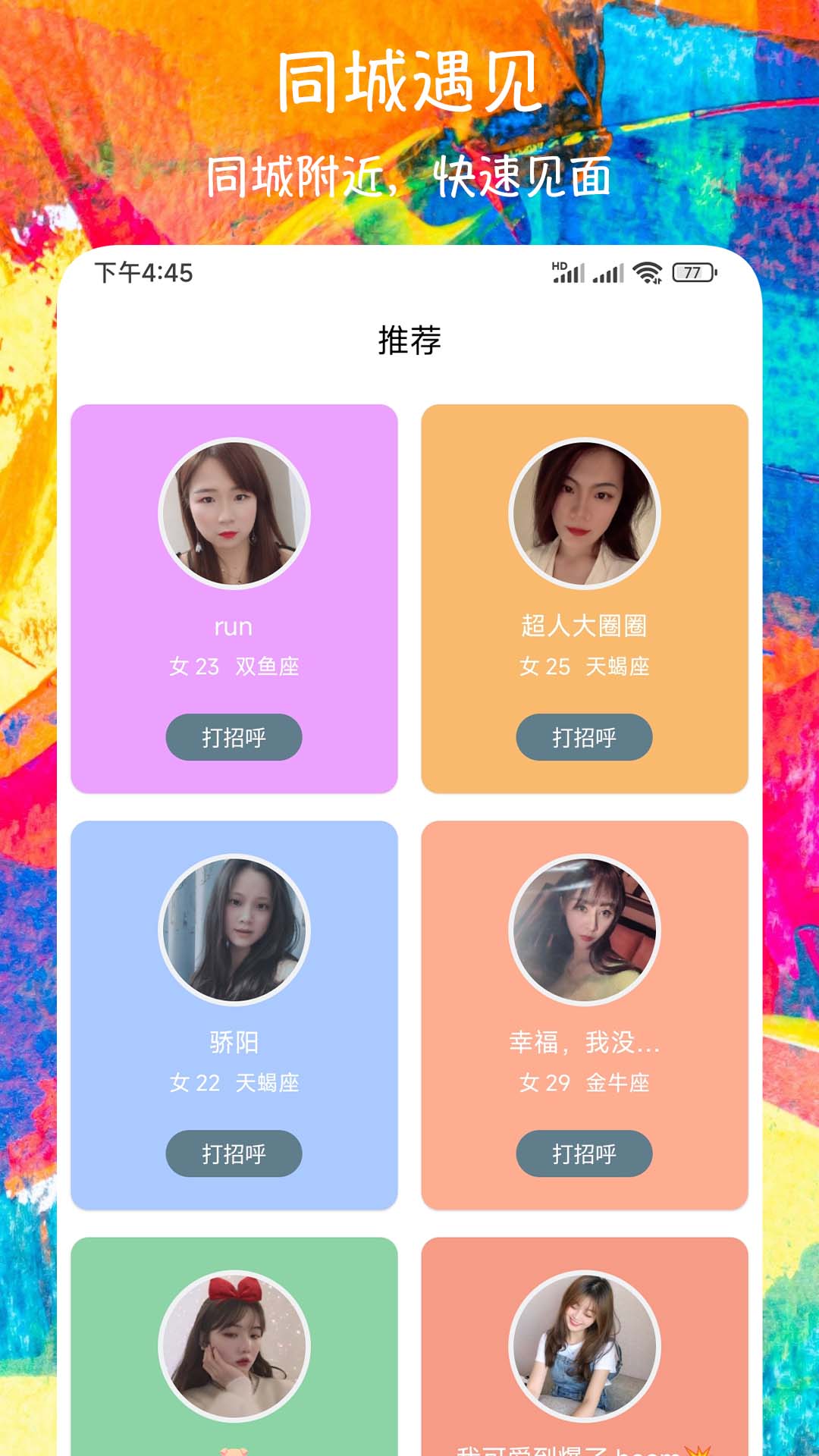 1、专为单身男女打造的零门槛陌生人社交平台,让同城约会交友变得轻松简单!