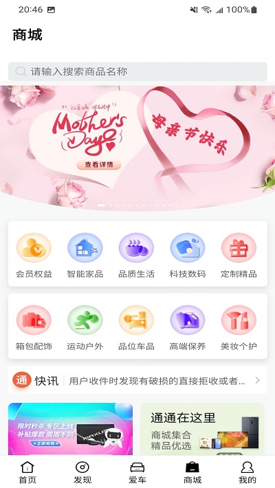 4、商城板块包含权益卡券兑换、生活家居用品、数码家电产品、美妆个护及车载精品选购。