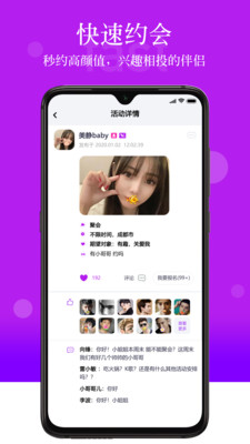 用户可在平台上发布如观影、聚餐、运动、旅行等各类活动信息,快速找到志同道合者。