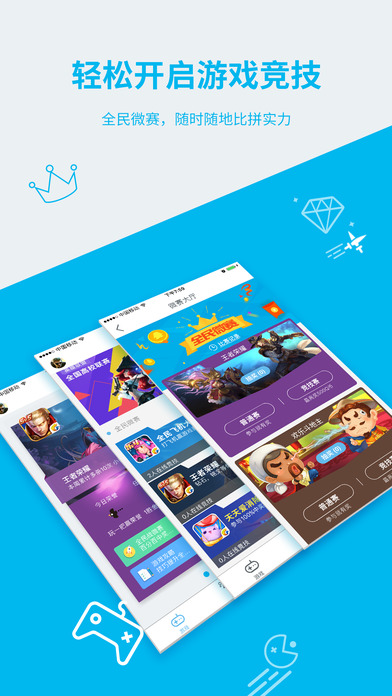 1、微赛全新改版,欢乐斗地主、天天酷跑、全民飞机大战等热门游戏可随时随地比拼战绩;