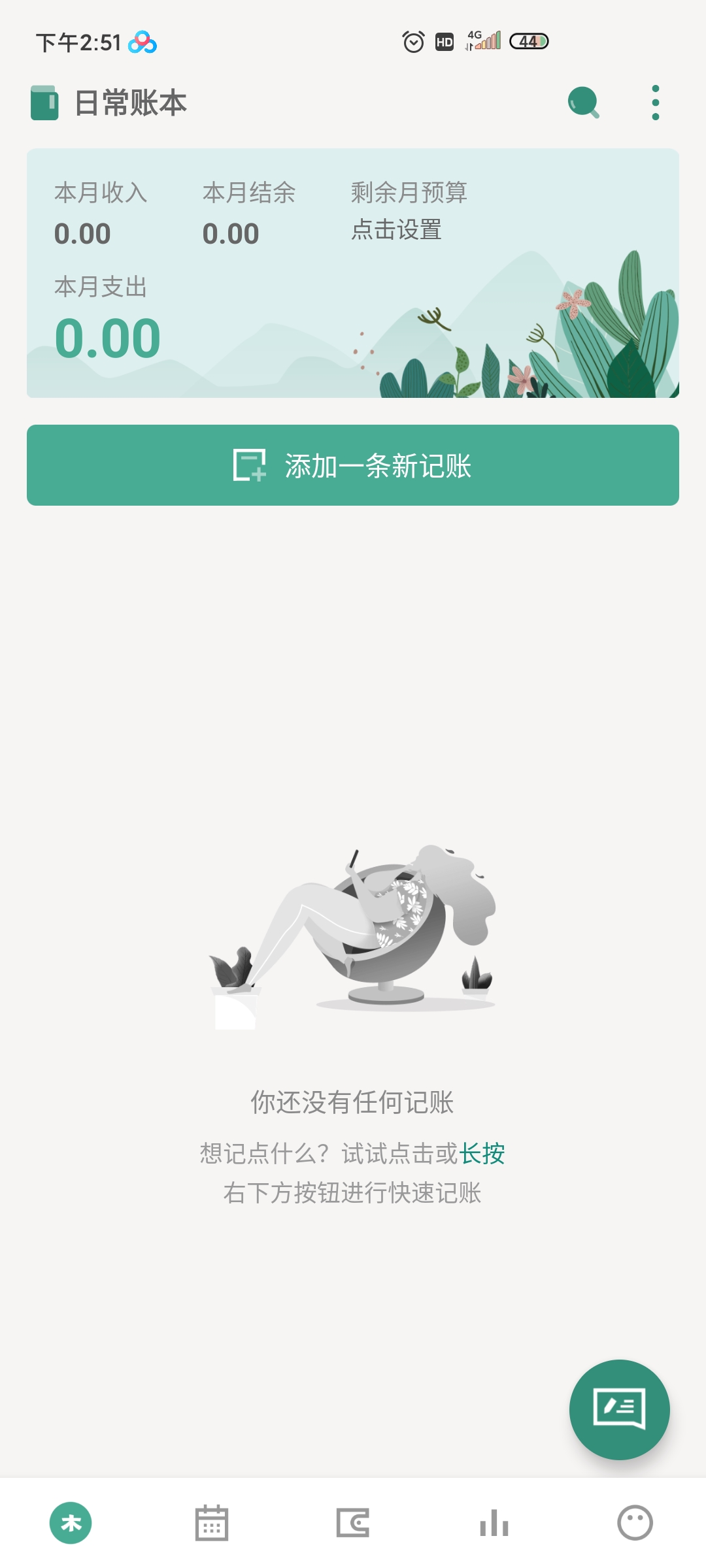 2、通过日历视图,可方便添加账单并查看每一天的开销信息,一目了然。