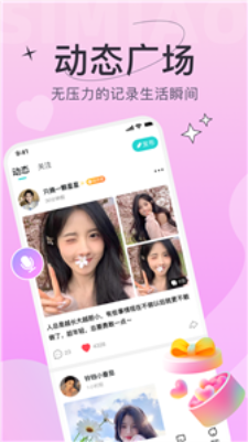 2.动态广场板块,让用户无压力的记录生活的瞬间,用户可以上传自己的动态,视频、照片和生活感悟。
