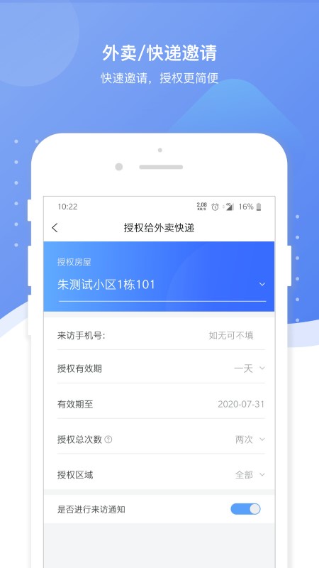 小区业主也可通过手机对自己的2265好友进行门锁授权,同时可以查看授权相关记录。