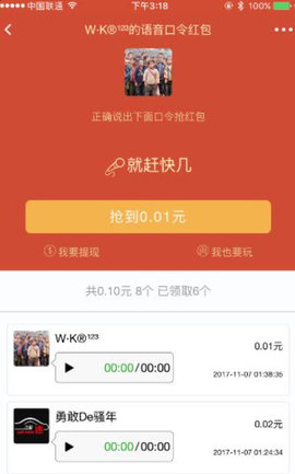 进入语音口令红包页面后,准确说出显示的口令(如图所示),就能成功抢到红包。