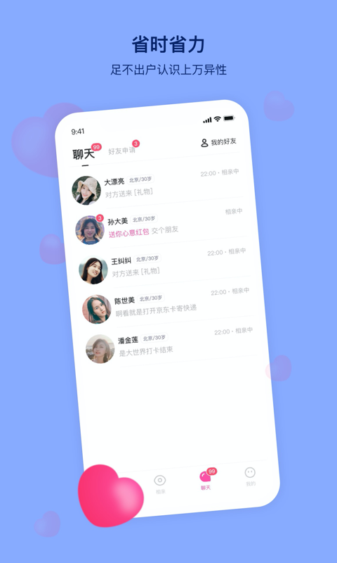 1、在平台轻松认识更多异性用户,就能尽快的摆脱单身。