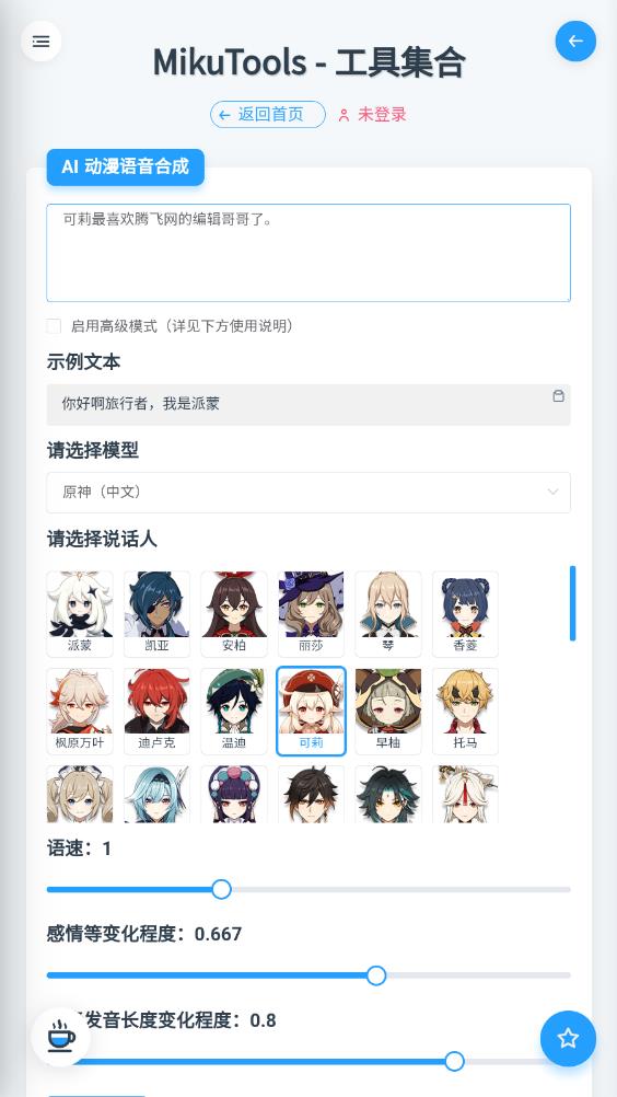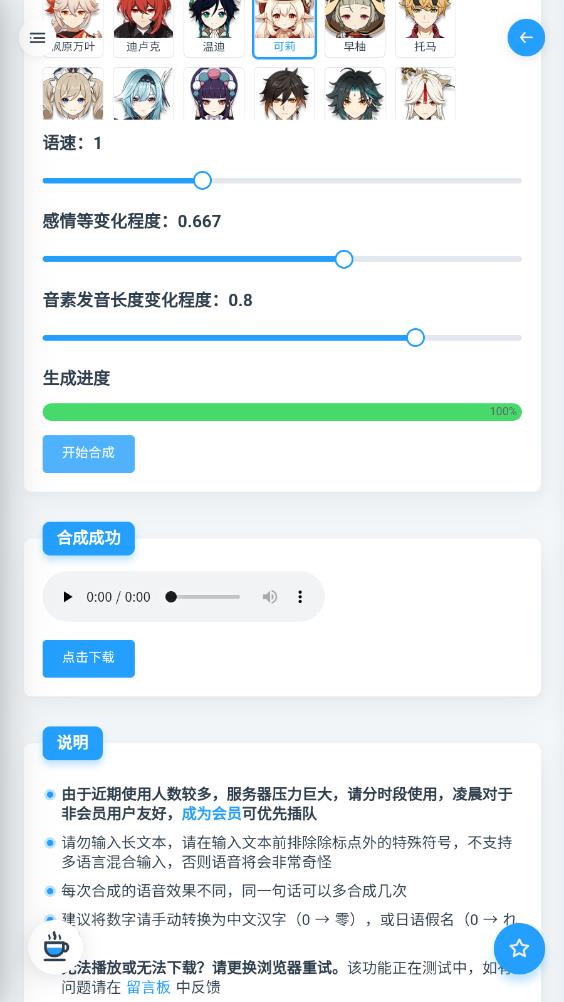2、让你尽情的体验你喜欢的角色的声音,无论是任何语言都能够进行生成。