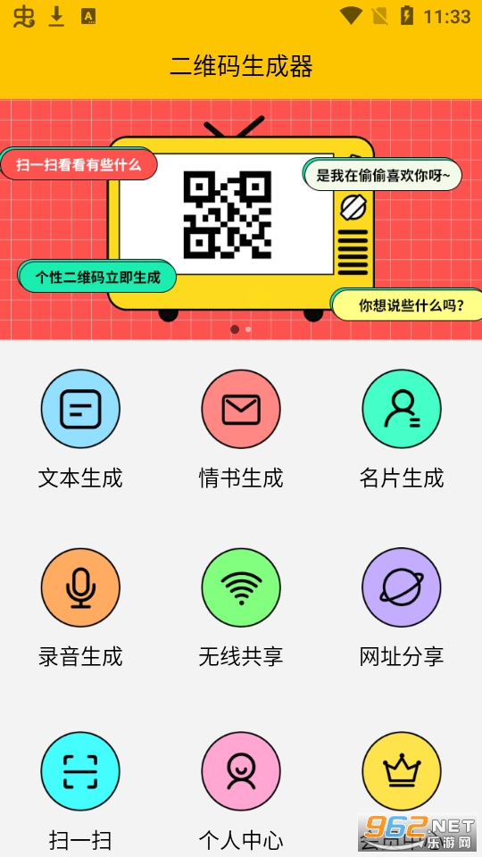 1.一键制作专属彩色二维码,支持文本、网址、图片、视频、语音、音乐、名片、WIFI等格式,多种精美主题和边框任君选择,也可以匿名的表白。