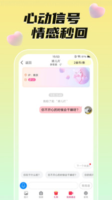 【视频通话】:向心仪对象发送视频邀请,眼缘对了就马上开聊,全天候陪伴不寂寞;