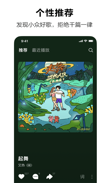 【个性推荐,发现小众好音乐】发现好音乐不再是难题;根据你和品味相似的人的听歌偏好,为你推荐感兴趣的歌曲,拒绝千篇一律