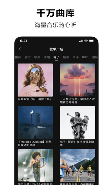 【千万曲库,海量音乐随心听】收录流行/嘻哈/电音/摇滚/国风/民谣/独立/纯音乐/R&B/爵士/乡村/蓝调/雷鬼/拉丁等音乐品类,好歌听不完。