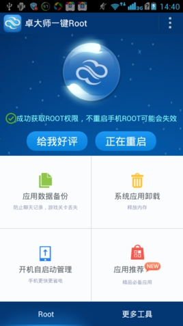 卓大师一键root是一款集合了刷机、获取ROOT权限以及文件备份等功能的手机管理工具,帮助用户全面释放手机潜能。它不仅支持多种机型,还提供垃圾清理与加速服务,让用户轻松掌握高效便捷的手机操作体验。