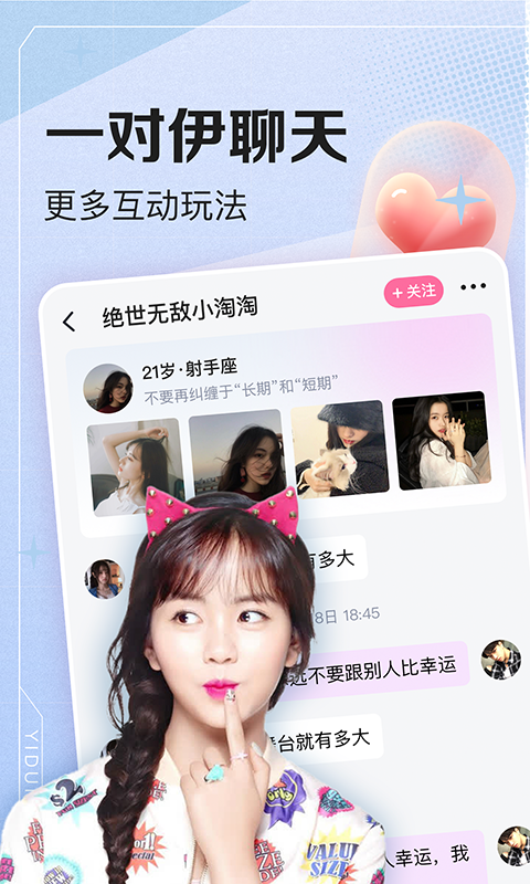 一对伊是一款恋爱聊天社交软件,可以帮助你轻松寻找恋人,在这里真人认证的同时给你最好的个人隐私保护,超多高颜值单身美女和帅哥汇聚在这里,支持在线语音聊天,视频聊天,还可以线下约会见面哦,感兴趣的朋友不要错过了。