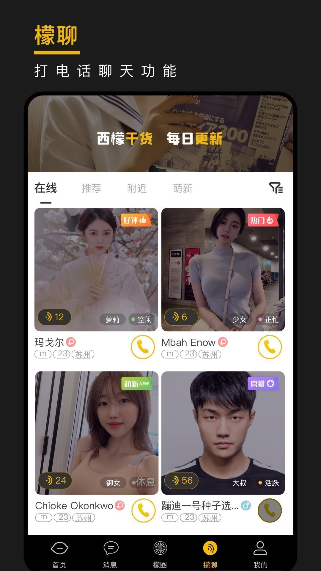 西檬之家smon是相当不错的一款社交软件,这里有着很齐全的社交功能,有着很多的好友可以结识,并且大家的爱好都是一样的,也不用担心我们放不开,采用了崭新的语音交流,感兴趣的朋友快来下载体验吧,不要错过了。