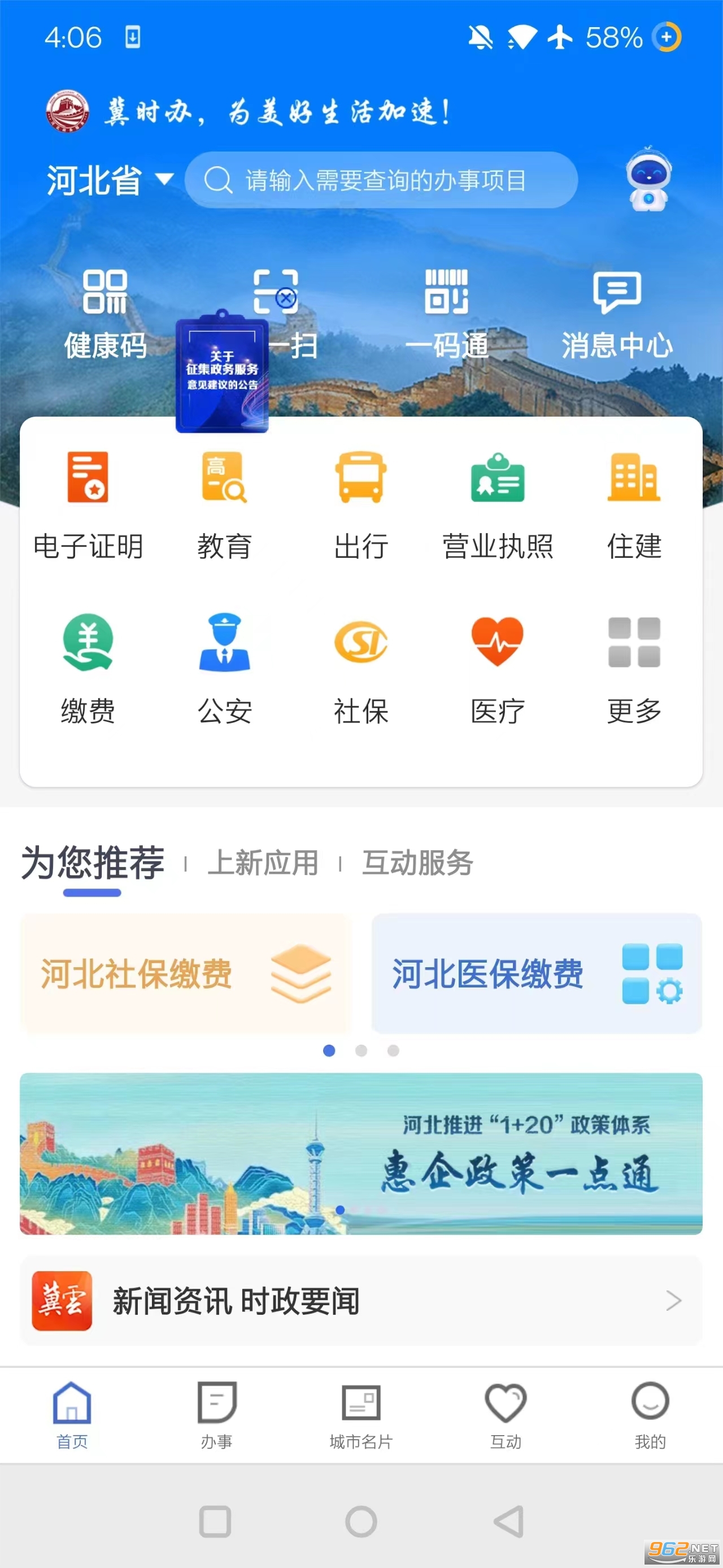 《冀时办APP》是由河北省政务服务管理办公室推出的一款非常不错的手机本地便捷生活服务平台,冀时办APP平台为广大用户提供一站式服务平台,多项生活缴费办理平台,欢迎下载体验!