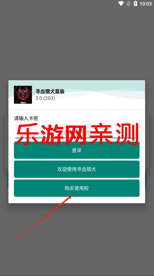 1、下载安装以后打开,点击购买使用权获取卡密。
