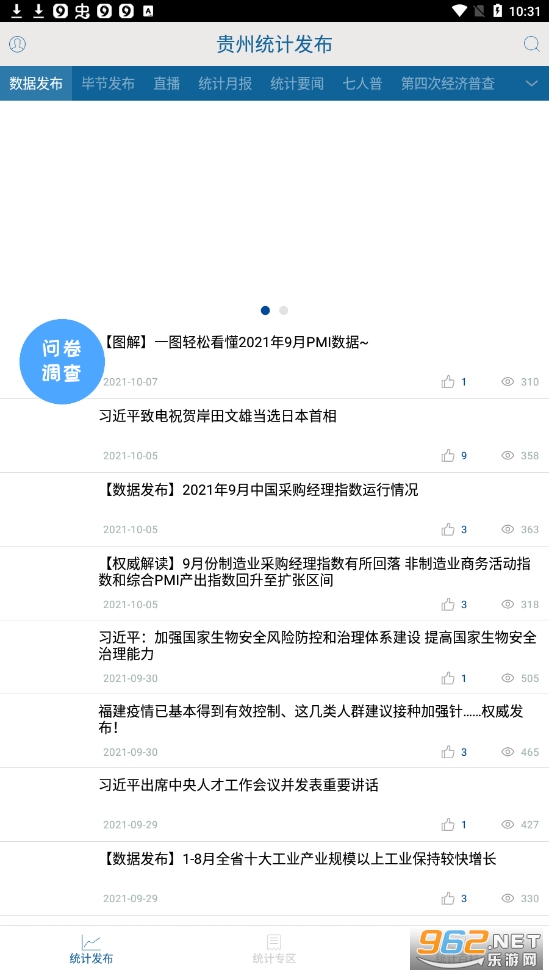 专门为用户打造的一款信息统计和发布的权威平台,里面拥有丰富的问卷调查,强大的数据库知识,专业的知识和信息,让用户能够随时随地掌握本地和统计相关的最新资讯和动态,超级的方便,需要就下载吧!