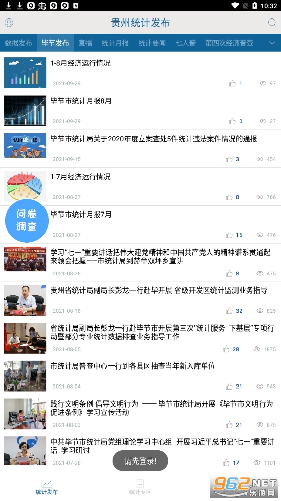 《贵州统计发布app》由贵州省统计局推出的一款非常好用的政务处理平台,功能包括问卷调查,全民禁毒,黔南政务,经普,生态文明会议,便民服务,统计年鉴查询等众多的服务,大家可以在这里查看由贵州省统计局发布的最新消息,公告等等,还可以做调查,处理政务,超级方便,需要就下载吧!