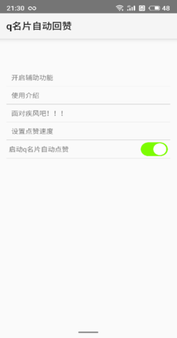 QQ名片自动点赞辅助工具依靠模拟手指点击来实现自动点赞功能。