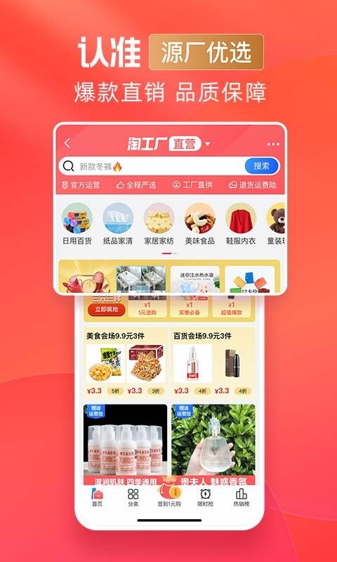 手机淘宝客户端依托淘宝网强大的自身优势,整合旗下团购产品聚划算,淘宝商城为一体,提供给用户每日最新的购物信息;更具有搜索比价,订单查询,购买,收藏,管理,导航等功能,为用户带来方便快捷的手机购物新体验。