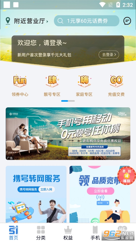 《中国移动上海app》是中国移动通信集团上海有限公司推出的一款移动服务平台,适合上海移动用户使用,软件有着首页、分类、权益、手机和我的五个栏目,可以充值话费、订套餐、加流量、装宽带、买手机等,有着众多的服务可以享用。