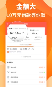 3、额度灵活:小额借款轻松快捷;大额贷款高达50万,满足不同场景的资金需求