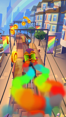 3、这是完成钥匙任务第二快的办法(第一快是直接花钱买过),每趟在你使用过钥匙后,在后面的跑酷中一定能捡到一把,并且出现概率会随使用次数的增加而增加,因此,在完成任务时,可以用一把捡一把,自杀,再跑,用一把捡一把,不过这一招有风险,考验你在用过钥匙到捡到钥匙之间这段时间的技术,新手可以用滑板来帮忙保命。