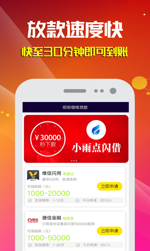 1、闪电贷款:一分钟申请,审核通过,5分钟快速放款,快速贷款不等贷!