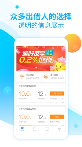 严谨的风控审核:确保每个借款项目的质量,从根本上防范项目逾期的风险,让用户放心投资;