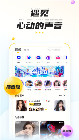 1、语音聊天室,多人连麦互动,大神女神齐聚聊天室,上麦互动,小游戏快速破冰交好友,各种精彩玩法乐趣多。