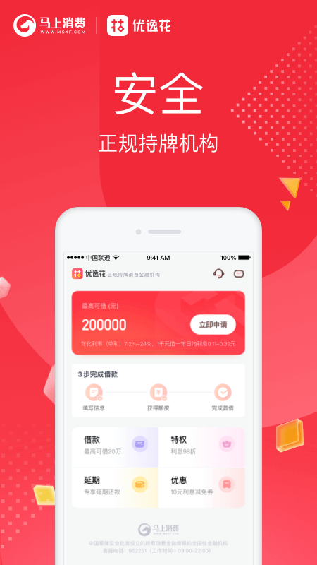 优逸花是一款非常实用的线上分期消费软件,能够帮助用户解决一时的资金缺口,申请便捷,7*24h线上申请,告别等待、审核通过后最快一分钟放款,非常的便捷,支持循环使用、提前还款等等,帮助各位更好的解决资金压力,有需要的小伙伴快来下载吧。