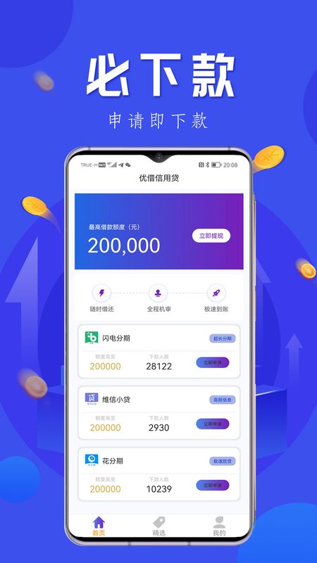 优借分期app专业的借贷软件,通过手机进行线上的操作,超多的门槛,超低的利息尽在其中,自由成功率高的借贷软件,通过审核之后就会显示额度哦!