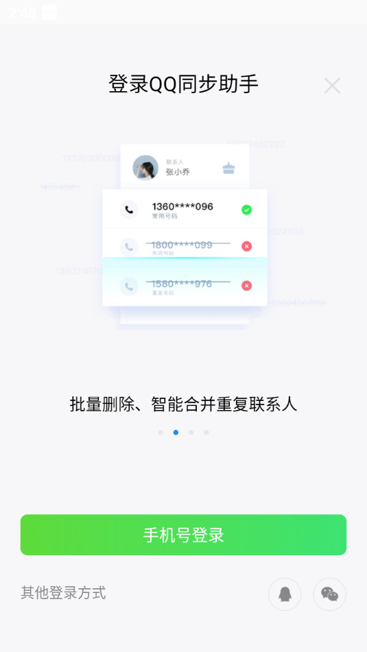 【便捷管理】:使用已有QQ即可便捷快速登录,将以往备份资料,迅速同步到新手机