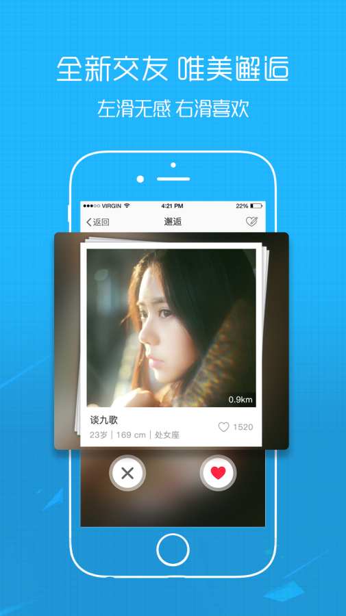 宜宾零距离是国内领先的年轻交友app之一,千万单身用户的共同选择! 在这里你可以探索距离您附近几公里内的单身陌生异性,可以遇到同城心仪的她/他,和你附近陌生的Ta来一场浪漫的约会。你可以通过文字视频通话等多种方式与同城附近异性聊天互动。语音速配,秒遇见懂你的陌生人。