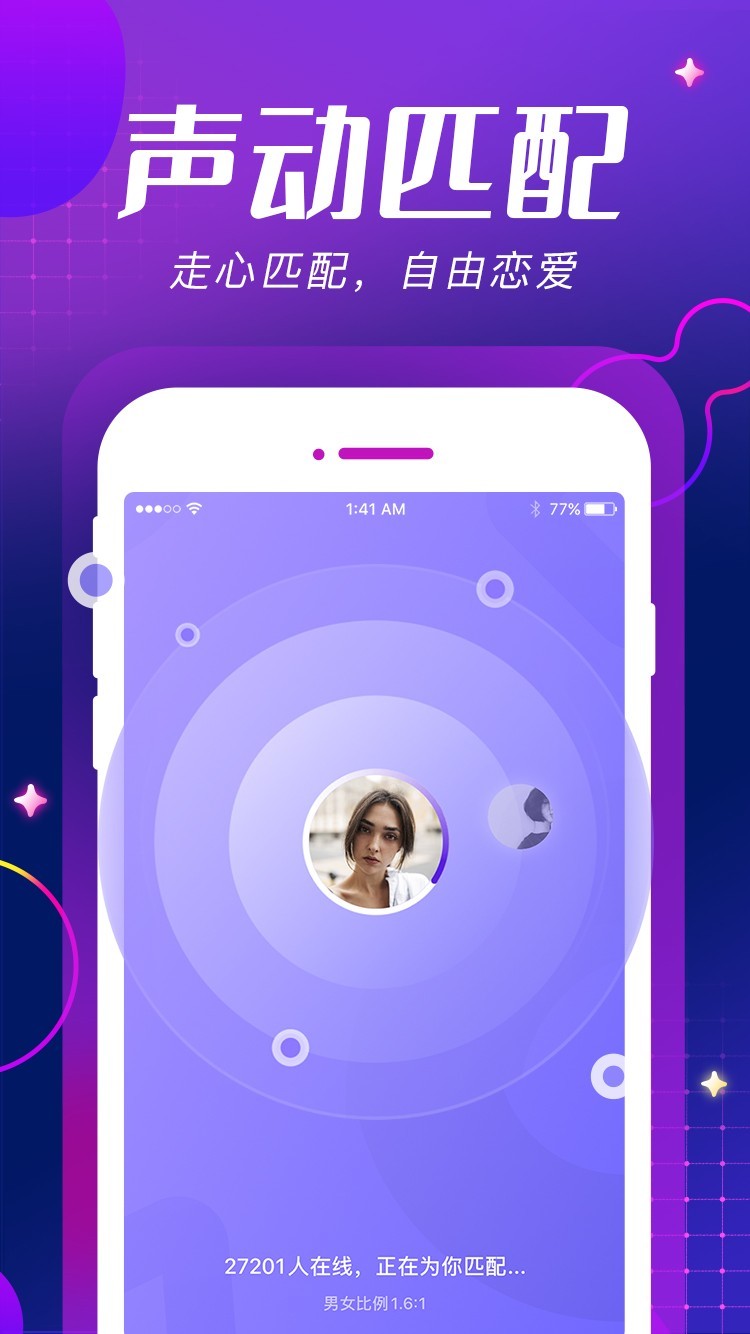 2、声音速配功能,快速找到与你匹配的灵魂伴侣,在小范围空间内畅享深度交流;