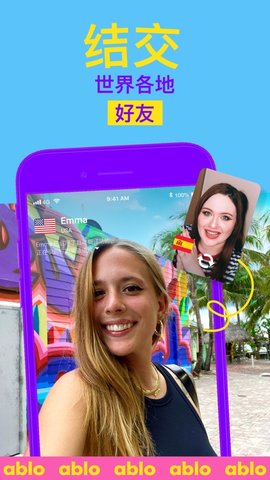ablo聊天软件(全球社交)正版聊天软件是一款可以让你和全世界的用户交流的社交平台,大家在这里不仅可以文字交流,还能语音和视频聊天,并且不用担心语言的问题,平台为大家提供强大的翻译功能,你可以直接的使用自己的母语进行交流,让你们之间交流起来没有任何的问题!