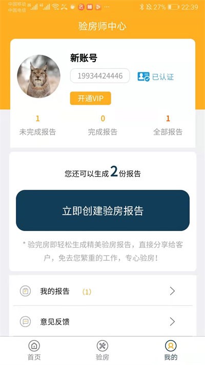 一键生成验房报告,操作简单方便,设置首页、验房、我的等模块